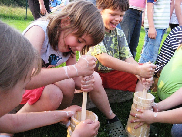 wyrabiania masła. Uczestnicy tych warsztatów doją