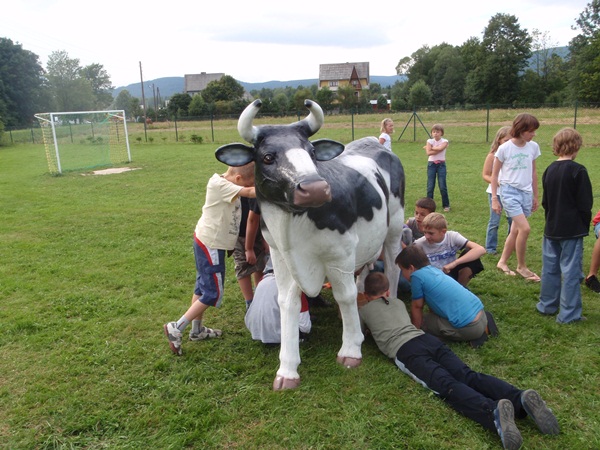 „Na gospodarstwie” dojenie sztucznej krowy i robienie