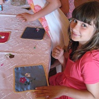 wyszywania metodą stosowaną przez góralki na Podhalu, ćwiczą